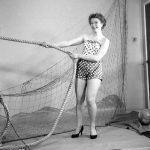 A set of negatives from 1957. These are from a collection of negatives from a very keen amateur photographer. This appears to be an amateur “beach” photoshoot. I really like the photo of the photographic and lighting kit. No location is given.