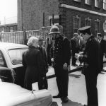 It depicts what appears to be an Emergency incident involving the Police and the Fire brigade. Deptford, in South East London. The print was made from a 1960’s Kodak negative.